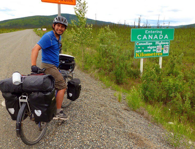 Biking from Tok to Skagway: entering Canada from Alaska.