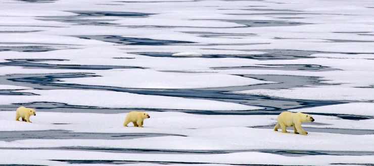 Sixty-one polar bears were sighted, and one day three male polar bears walked right up to our ship, close enough to touch it. Then two of them got a little too close and one nipped the other in the bottom and the bitten one ran off. It was like being on a nature channel!